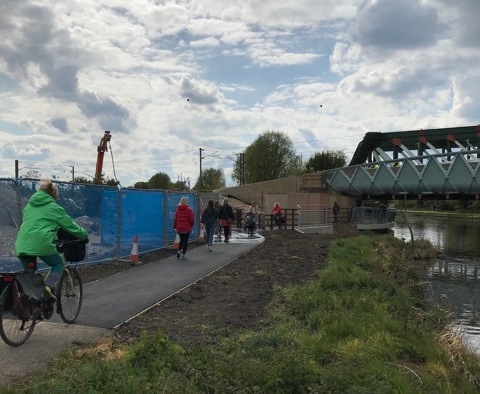 The jetty path under the railway bridge linking Ditton Meadows with Stourbridge Common opened up this afternoon.