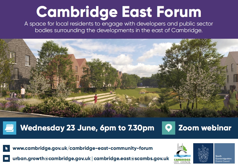 | Cambridge East Forum - Zoom webinar on 23 June, 6pm to 7.30pm 16 June, 2021 | |